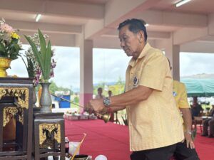 พิธีการเริ่มต้นด้วยการประกอบพิธีสงฆ์เพื่อความเป็นสิริมงคล ก่อนที่ท่าน ดร.สท้าน วารี จะเป็นเกียรติในการตัดริบบิ้น เพื่อเป็นการเปิดอาคารเรียนอย่างเป็นทางการ”